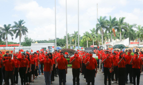 盛夏七月,热情似火!壹号娱乐公司已是党旗飘扬,处处洋溢着喜庆祥和的气氛。当日上午,身穿“中国红”T恤的党员等参会人员有序入场,列队数字“100”庆祝图案,表达对中国共产党的无限热爱。随着主持人一声令下,伴随着激昂雄壮的国歌声,护旗手奋力将鲜艳的五星红旗抛向天空,国旗迎着清晨第一缕阳光冉冉升起,全体人员庄重注视国旗,高唱国歌,脸上写满了骄傲与自豪。